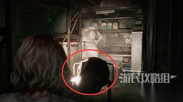 顶棚开合装置旁有个探照灯,先用探照灯暂时让怪物动不了,然后再去操作顶棚开合装置。