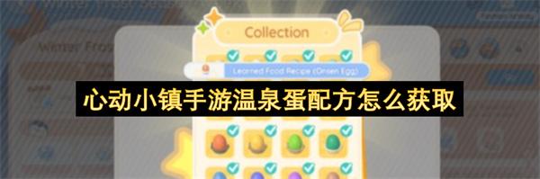 在《心动小镇手游》中,温泉蛋是一道特色料理。玩家需要完成特定收集任务才能解锁配方。部分玩家也许不清楚这个配方到底怎么获取,下面将带来心动小镇手游温泉蛋配方怎么获取,希望能够帮助到各位。