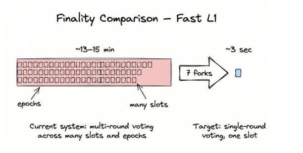 解决方案:换掉让所有运营者达成一致的那个引擎,目标是每个时隙内一轮投票就搞定。Minimmit 是研究中的领先候选方案之一,一个为超快共识设计的协议,但具体设计还在完善。重要的是目标:一个时隙内搞定。然后时隙时间本身也要压缩:计划路径是 12 秒→8→6→4→3→2。