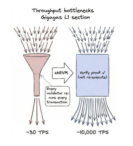 解决方案:「升级草图」的目标是每秒 1 千兆 Gas 的执行能力,对普通交易来说大概相当于每秒 10000 笔(具体数字看交易多复杂,不同操作消耗的 Gas 不一样),关键是一种叫「零知识证明」的技术。