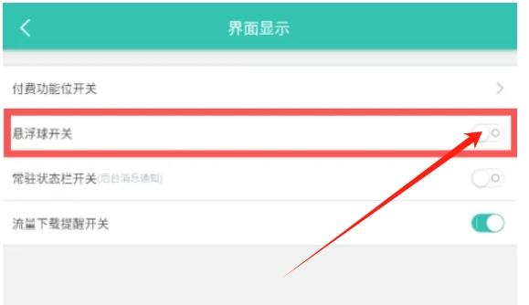在界面显示选项中,找到“悬浮球开关”选项。此时,你可以看到悬浮球开关的状态,点击该选项后面的开关按钮,将其关闭。