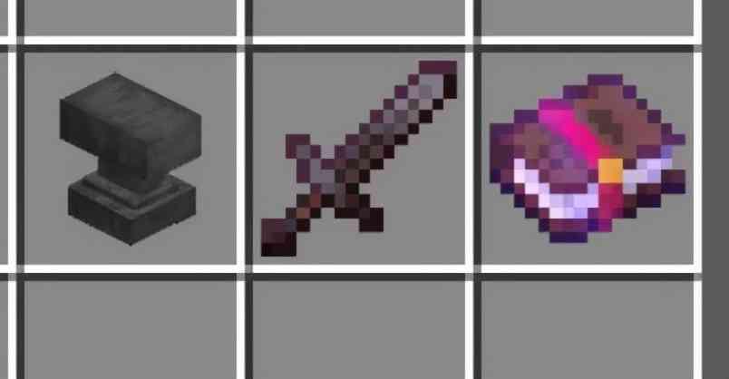 (1)、放置铁砧,打开后,将无附魔属性的剑放在左边,有附魔属性的剑放在中间。