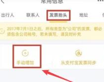 进入常用信息页面,选择发票抬头选项,点击【手动添加】。