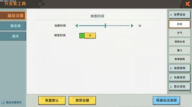 一,进入游戏,点击创造新世界;二,点击开发者模式,进行创作;三,点击创作后,点击游戏右上角的编辑;四,点击基础设置,点击锁定时间即可永远是白天。