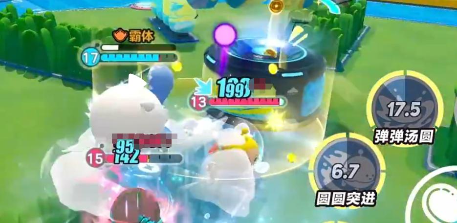 先说圆圆子的被动,叫甜甜补给。这个机制比较特别,技能打到敌人之后,会在自身附近掉落糯米块,然后圆圆子可以捡起来回血。也就是说,只要技能持续打到人,就能一边打一边补血,续航能力很强。更有意思的是,圆圆子的血量越高,体型就越大,技能的覆盖范围也会跟着变大。所以保持高血量不只是为了活得久,还能让技能打出更大的效果,两件事是连在一起的。