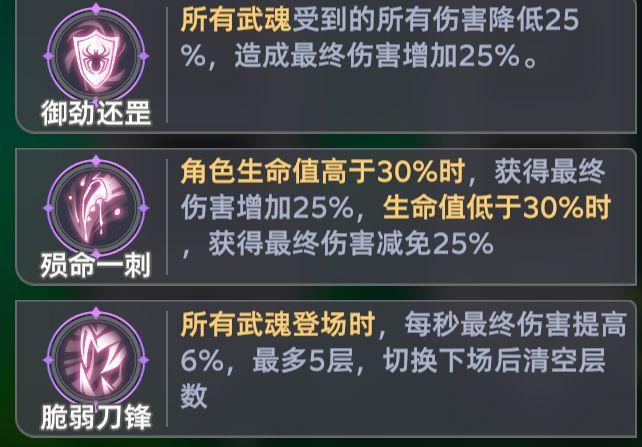 备选Buff:殒命一刺、脆弱刀锋(登场后每秒增伤6%)、万律织命曲