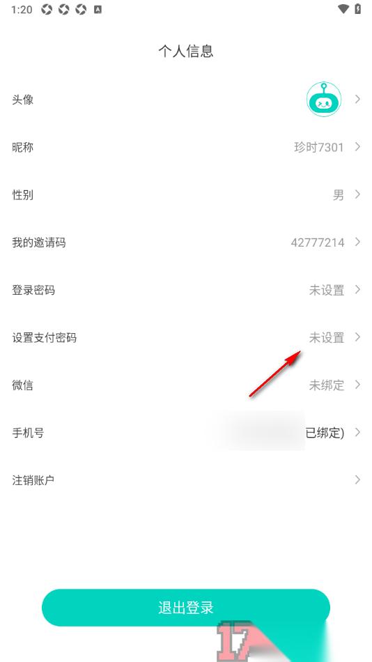 3.这时候在打开的窗口中即可查看到相关的个人资料信息,找到其中的【设置支付密码】选项点击打开即可进入操作。