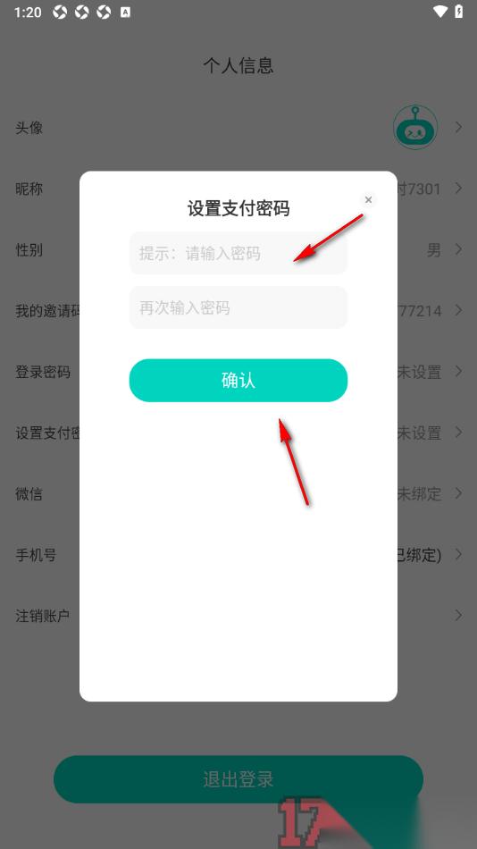 4.在当前打开的窗口中输入自己想要设置的支付密码信息,然后点击【确认】按钮即可保存。