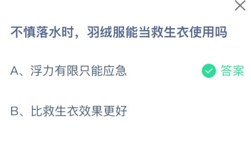 以上就是不慎落水时,羽绒服能当救生衣使用吗?支付宝蚂蚁庄园2026年3月16日答案最新,更多相关攻略,请关注3dm手游网更新!