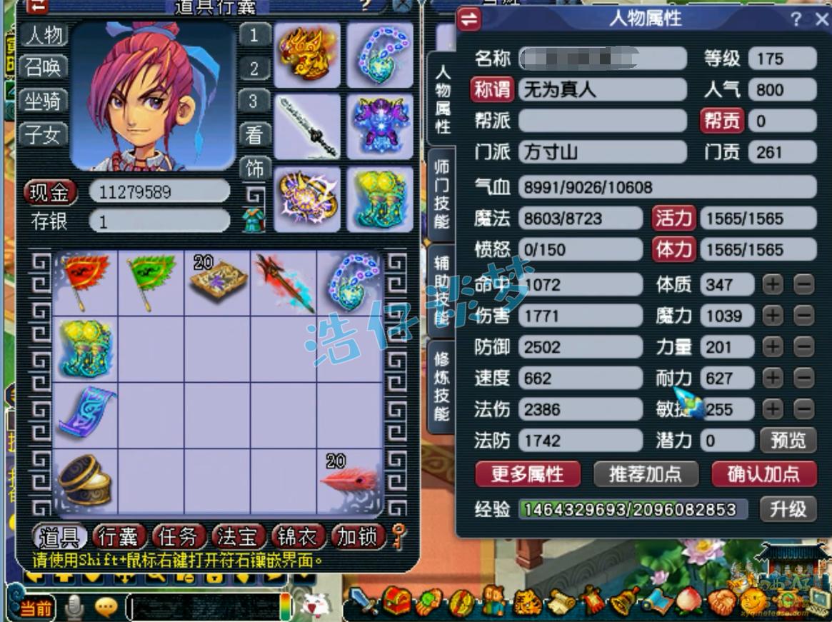 175级方寸没打临时符的面板属性,耐魔属性加点,防御2502,他的神器选择的是全法暴,所以法伤看上去不高,全是隐藏属性!