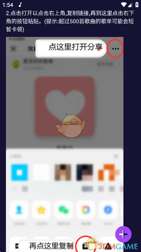 4.在分享页右上角复制链接,再回到Fly音乐Plus的导入页面,点击右下角按钮将链接粘贴进去即可完成导入。