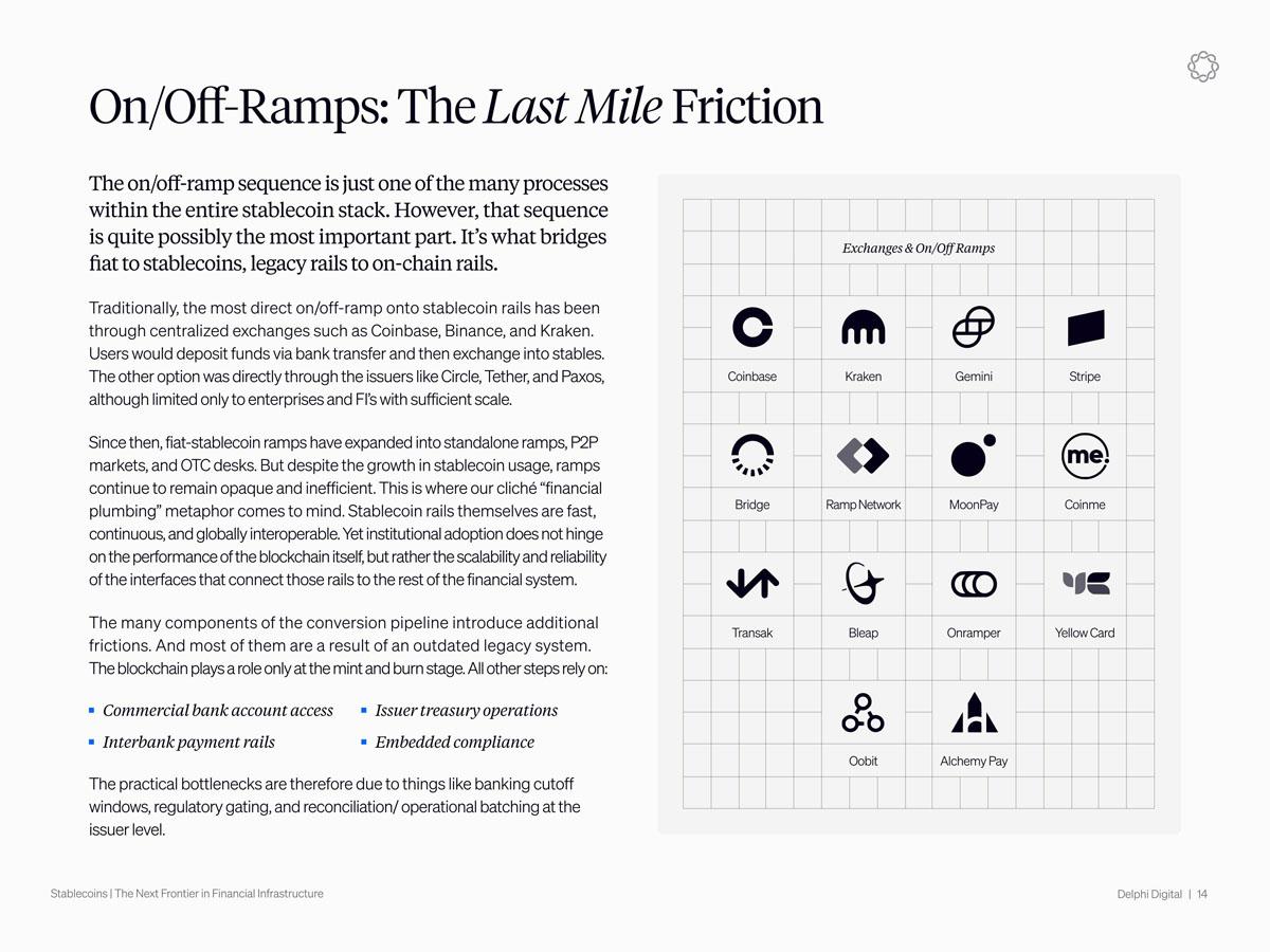 稳定币正逐渐成为昂贵的传统外汇轨道更廉价的替代品,但据 Delphi Digital 称,银行账户访问等退出机制带来了显著的阻力。