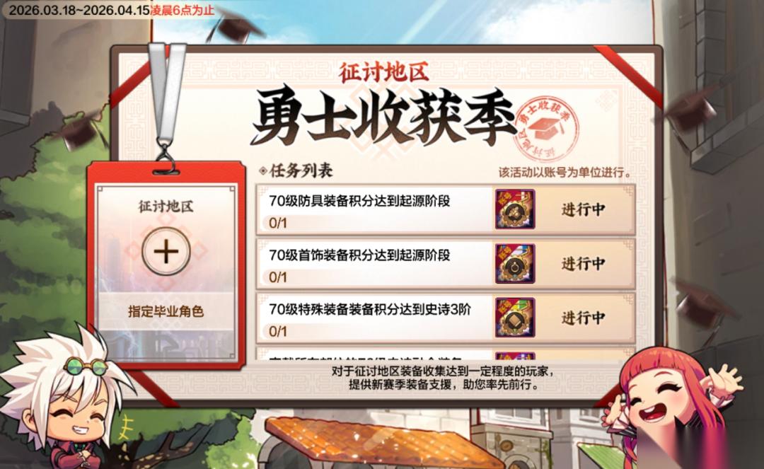 “70版本毕业送满级扩张装备”活动已在新版本中正式开启兑换,勇士们可前往【活动】-【限定活动】-【征讨地区勇士收获季】查看活动详情。