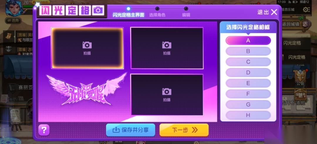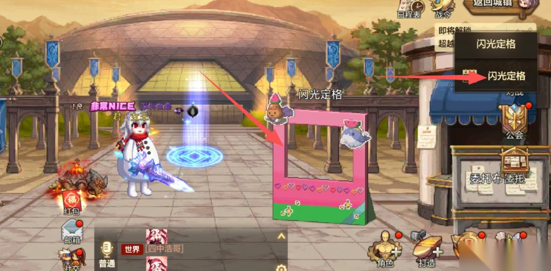 2、点击【闪光定格】入口,进行闪光定格相框编辑,选择要拍摄闪光定格的冒险团角色。