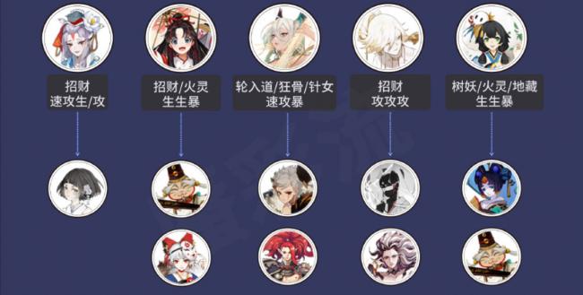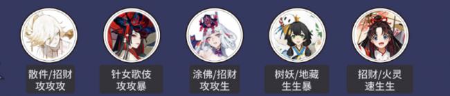 千姬队伍一速带招财或者涂佛,堆攻击和生命。缘结神和帝释天在后面行动,缘结神火灵或者招财堆治疗,帝释天可以带散件堆高攻击。日和坊带树妖或者地藏堆治疗,不需要速度。夜溟彼岸花尾速即可,带针女和鬼灵歌伎堆输出即可,夜溟彼岸花需要锁二技能,在下沉状态下可以免疫深度冰冻。