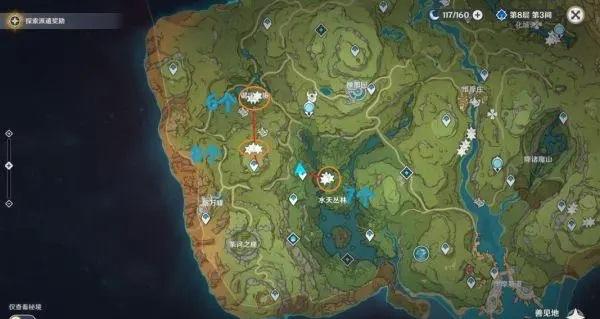 无郁稠林的劫波莲分布比较散,推荐从秘境伞盖的荫蔽进行传送。