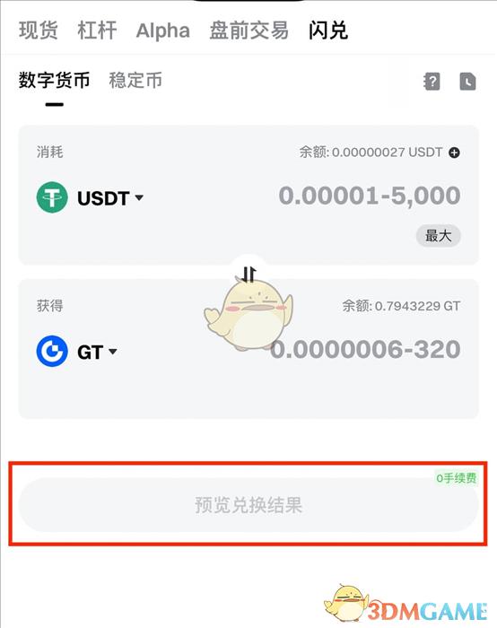 3、在预览界面,可以进一步查看兑换结果,倒计时结束后会重新获取报价,核实无误后点击“兑换”。