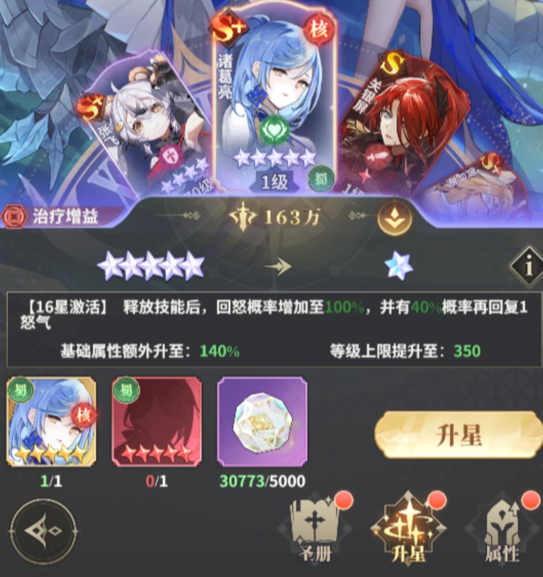 诸葛亮从5星升到6星需要准备本体一只、同阵容的5星狗粮一只。6星升7星的过程虽然比不上6星升5星那样容易,但是也需要玩家投入更多的精力去积累,尤其是升阶石。随着角色的不断升高,所用到的材料数量、种类也会越来越多。7星到8星的升阶除了需要同阵容6星狗粮1只,1000个升阶石的需求之外,还不能忽略。玩家要时刻注意每次升阶所需要的材料,合理分配资源,不能浪费。