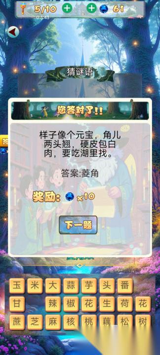 《快速看图猜成语》游戏或者以夸张、或者以幽默的形式设计,生成了各种连环紧扣的成语问答题,比如成语横行霸道,则是巧妙地运用了一只螃蟹进行了比喻,以这种娱乐与知识并存的形式,并通过渐次升级的关卡体系设计,让大家逐渐渐入佳境掌握成语的精髓内涵。