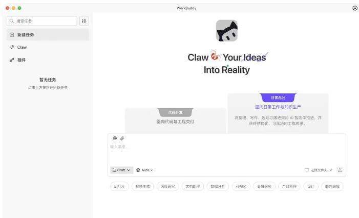 它的定位是桌面工作台,需要安装在Windows/Mac电脑上使用。不过,你可以通过手机远程“遥控”它干活——WorkBuddy支持接入企业微信、微信、QQ、飞书、钉钉等通讯工具,配置完成后,在手机上发消息就能指挥电脑上的WorkBuddy自动执行任务。