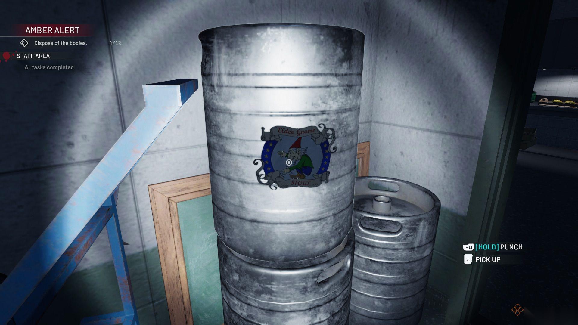 拿起厨房门边贴着Elder Gnome Stout标签的桶(其他桶没有标签,所以应该很容易找到),把它拿到厨房水桶点左边的空位上。