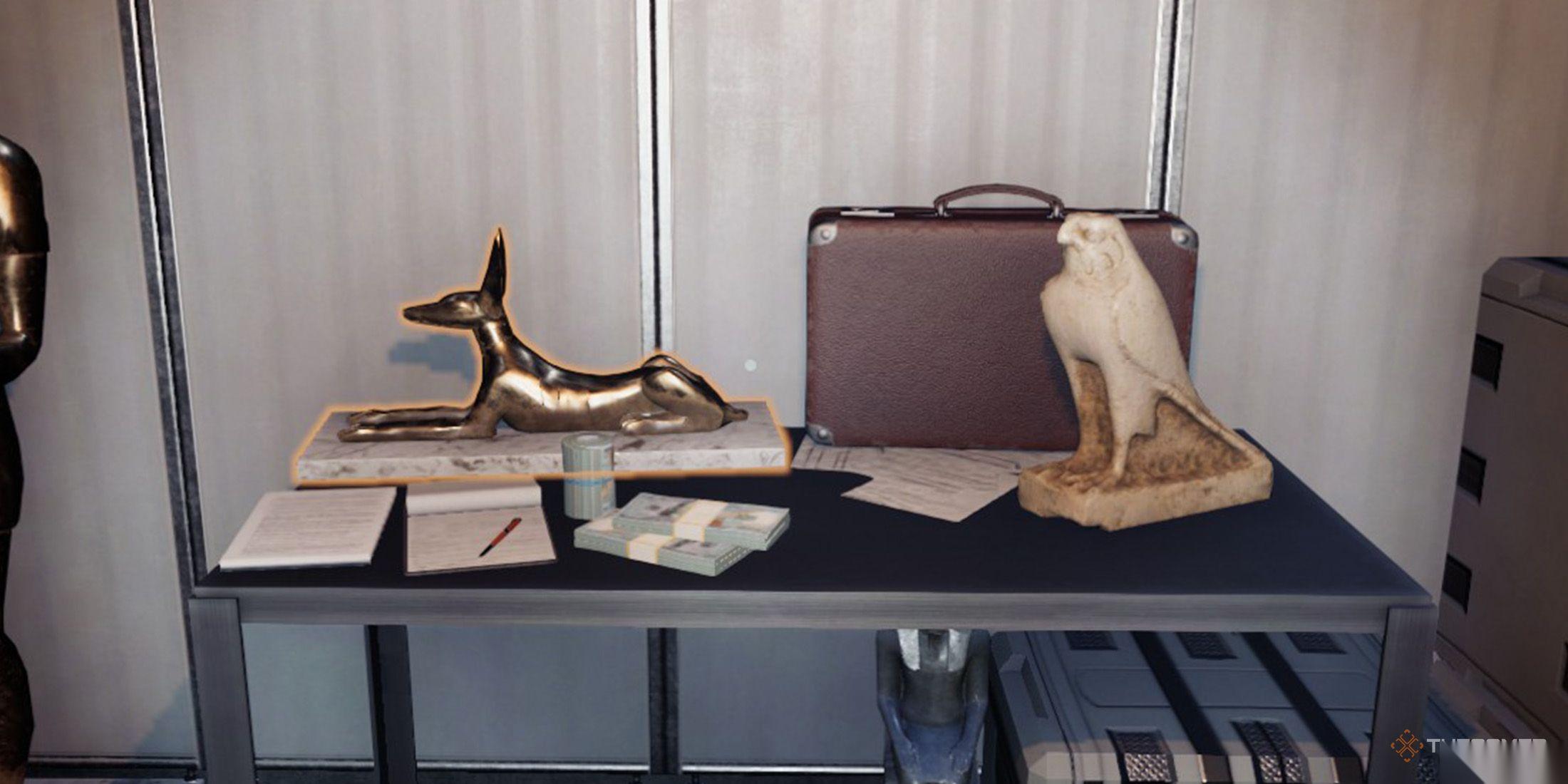 在你进去之前,需要破门而入并清理碎片。清洁街机以便将其移开,并整理里面的其他杂物。桌子上有一个贵重雕像,附近的文件柜上还有一个。