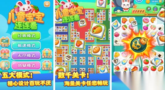 连连看是较为简单的游戏玩法,锻炼观察力与个人的反应速度,有蔬菜水果可爱的点心,多种元素主题,画面色彩鲜艳,再搭配清新活泼的动画音效,吸引儿童注意力,营造出欢快的氛围,游戏提供休闲地狱极速等多种模式,满足不同年龄段的水平需求。简单又直观的操作,通过点击相同图片即可快速消除,支持拐弯连线与道具系统。