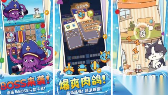 来到非常可爱的糖果世界,与其中的治愈小猫咪共同摸鱼,有超多三消关卡,每次完成之后都有机会获得丰富的道具和相应奖励,在逐渐升级,提升个人的技能等级,与猫咪共同出海。在海上探索时,可能会遇到巨大的海怪,玩家千万不要退缩或者过于懦弱,而是勇敢的与猫咪共同并肩作战,享受酣畅淋漓的战斗。