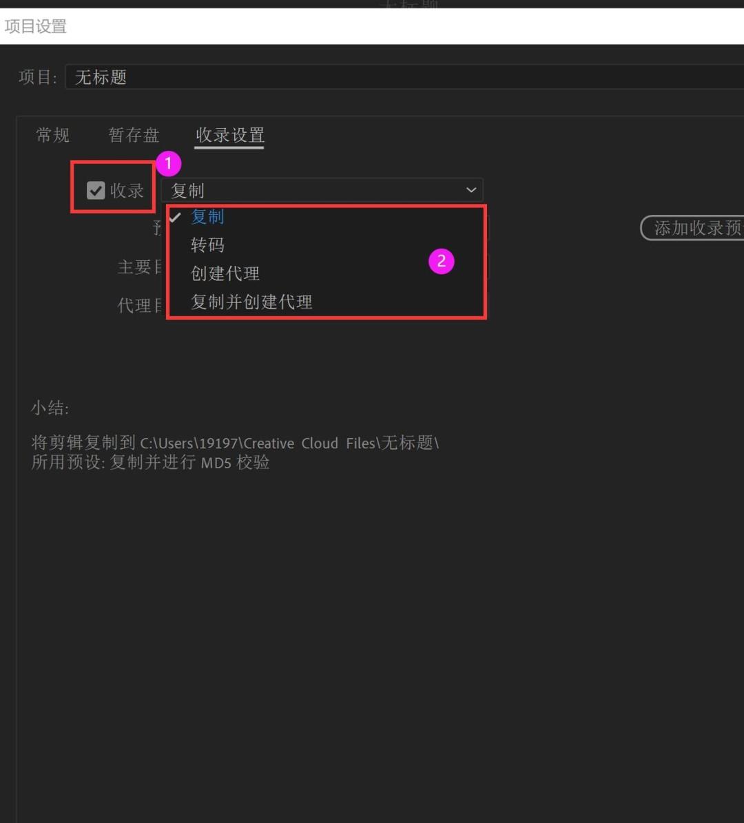 在媒体完成复制后,项目中的剪辑将指向这些文件的副本。