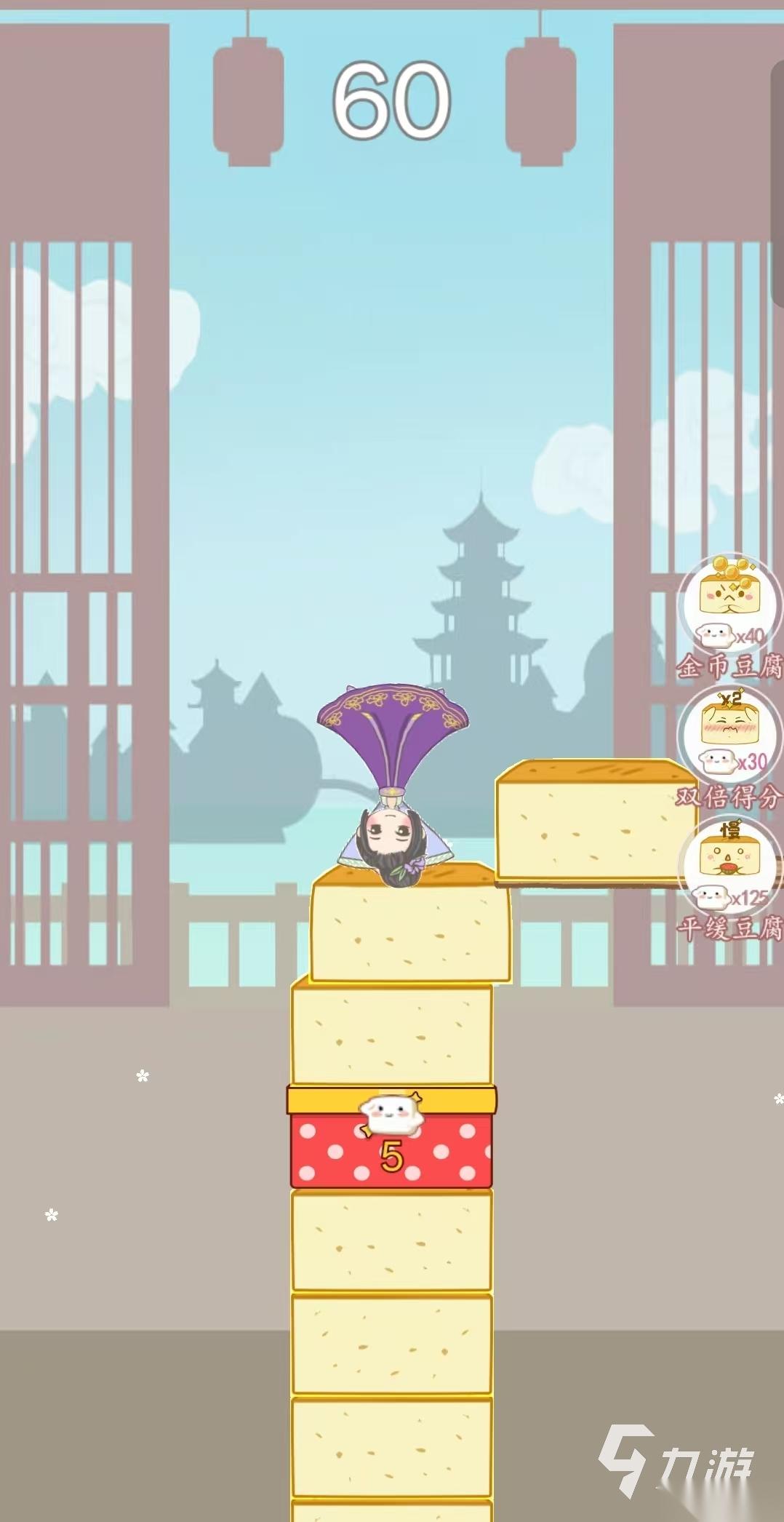 像堆叠蛋糕一般,将豆腐一层一层地累加,将豆腐女孩送到更高处。玩家根据豆腐靠近女孩时的距离,观察并把握住时机点击让女孩跳起来,顺利对齐豆腐,确保女孩站立的稳稳当当。随着豆腐的堆高,女孩的升高,豆腐女孩还可以解锁倒立姿势,有趣又滑稽。游戏中玩家还可以利用获取的积分兑换喜欢的豆腐女孩装扮哦。