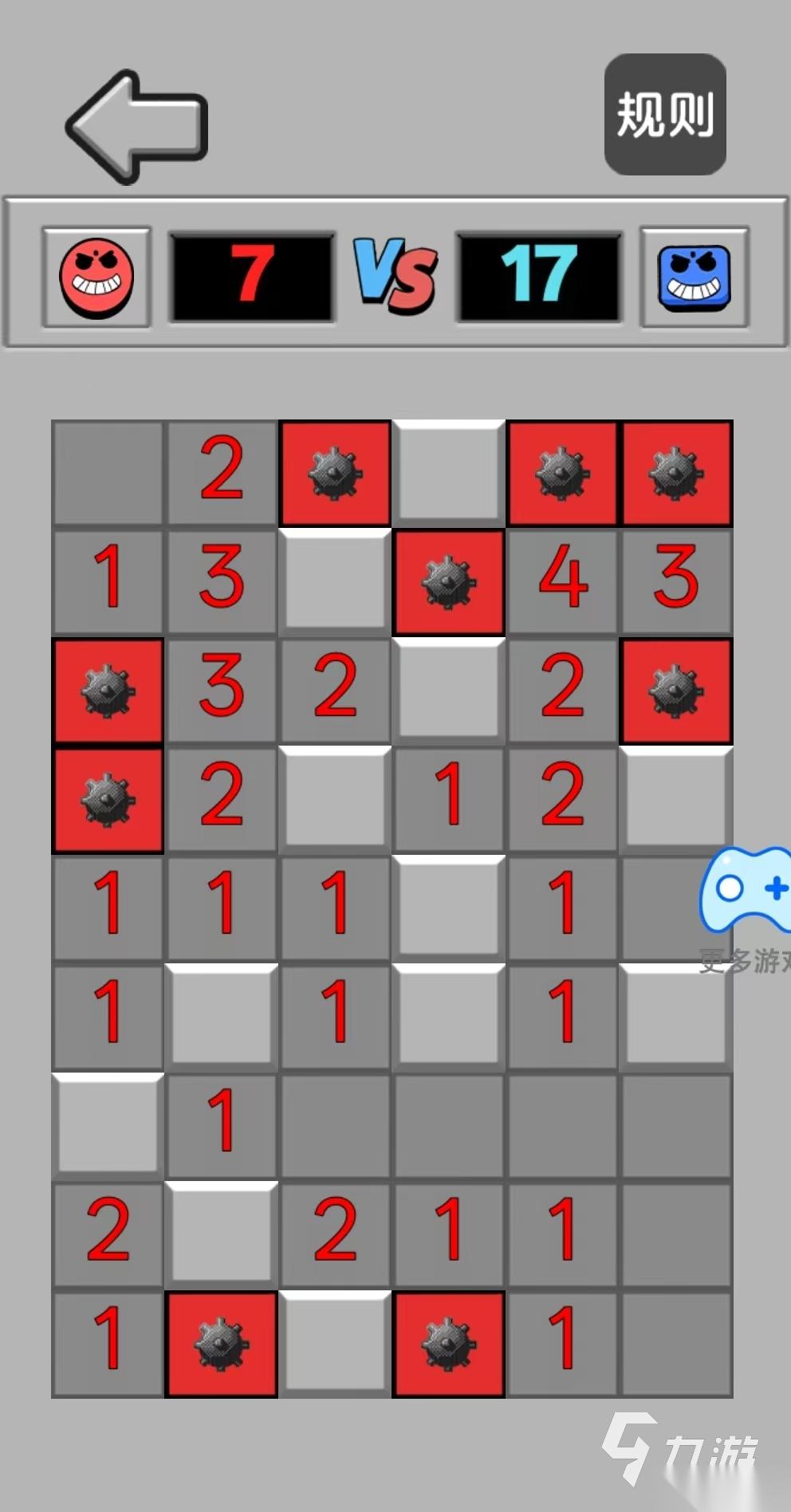 采用对局形式的扫雷模式,来一场与对方的积分较量,谁不敢呢?扫雷,顾名思义就是找出所以地雷的准确位置,并完美避开。方块扫雷王者游戏规则设定玩家轮流点击方块,在没有找到地雷的情况下即可得分,否则不得分还得扣分呢。所以玩家可得根据数字提示好好推理地雷所在方位,尽量避免,进而得分赢过对方玩家。