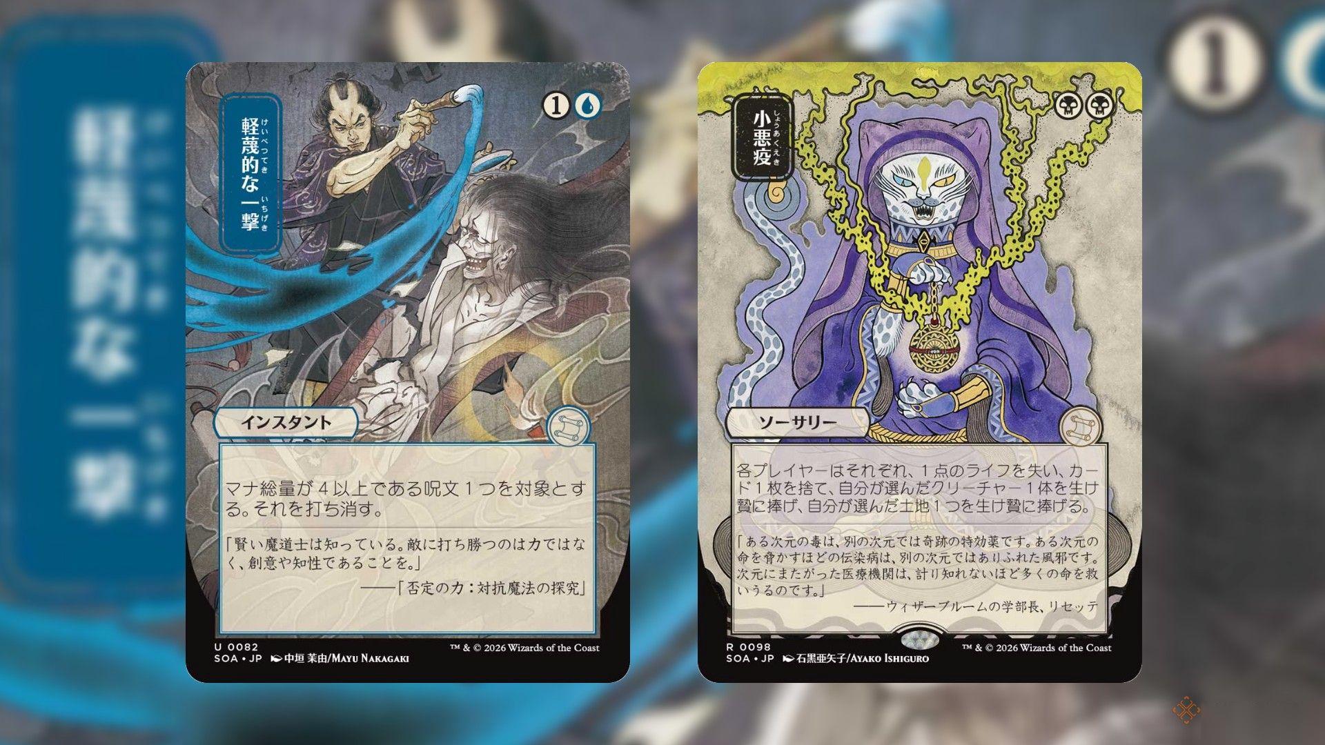 《万智牌:秘典之争》的“秘罗地秘典”版本发布时,标志性的日文秘典档案卡牌将以原文文本形式回归游戏。如果您难以识别这些卡牌,请不必担心,因为在游戏中将鼠标悬停于其上时,它们会自动翻译成您的母语。