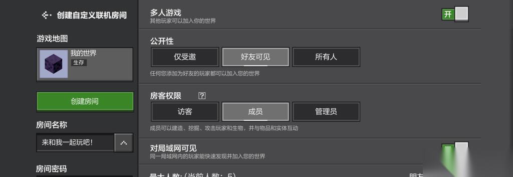 玩家可以选择创建自己的房间或加入朋友已经创建的房间。点击创建房间后,设置房间名称、密码等选项,然后点击确认。