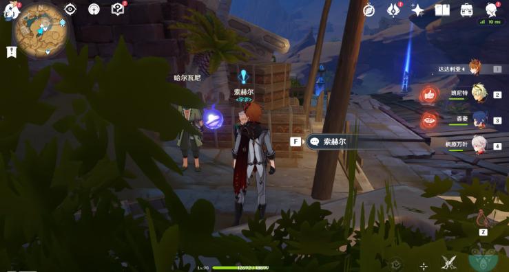 3.随后我们继续往前,开一处沙堆上前,我们利用万叶把沙子吹走,开启机关
