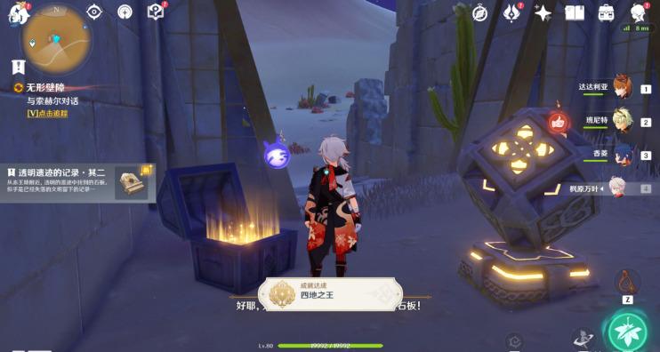 3.随后开启机关,打开我们的宝箱,获得透明遗迹的记录其二,同时获得成就:四地之王