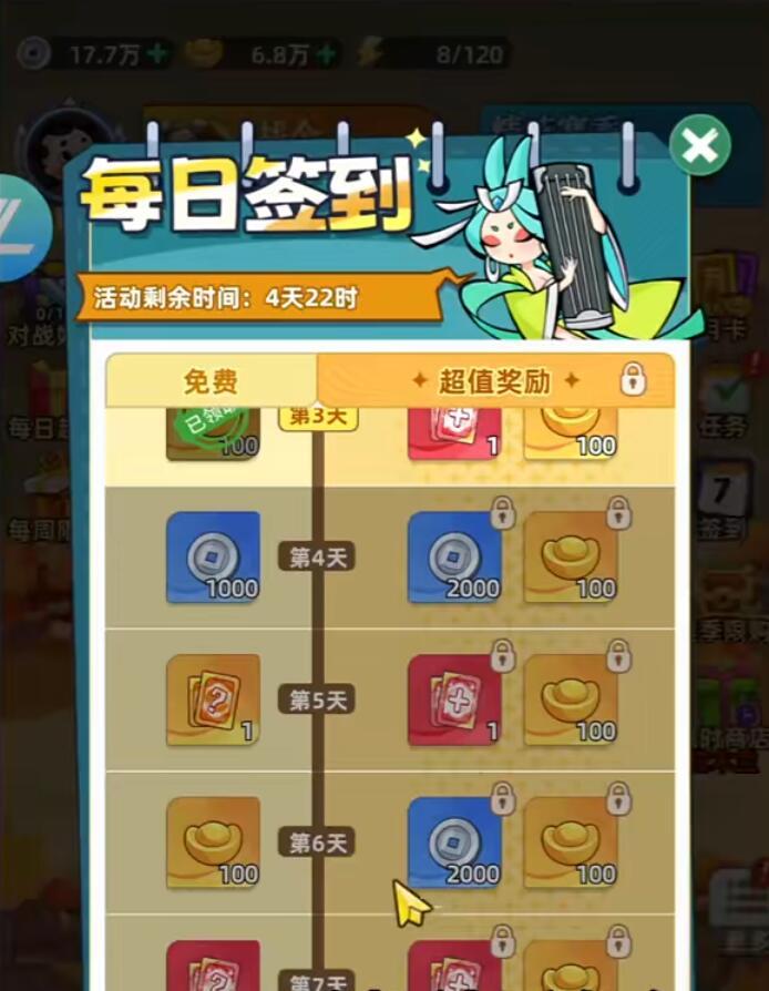 每日签到任务其实也能够让玩家获得福利,通常情况下是不会花费一点力气的,每天只需要登录游戏点一下就能够获得,一旦可以累积到7天的样子,此时玩家就能够领取神话英雄跟元宝,体力等等。神话英雄其实在游戏前期的时候是特别重要的,因为它能够帮助玩家建立阵容。