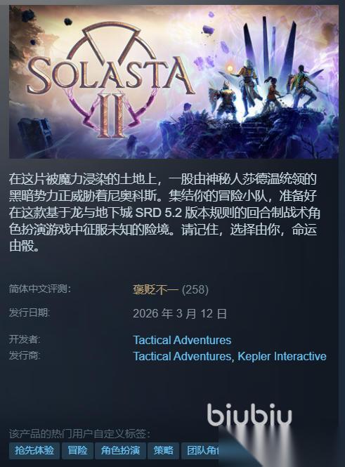 索拉斯塔2是由Tactical Adventures开发的,其实这个团队专注于战术角色扮演类游戏。所以整个游戏在开发的过程当中,不仅展现出了极强的创作方面的自主性,并且还能够将战术深度跟画面的表现力度推向了一个新的高度。虽然说这个工作室的规模并不是特别的庞大,但是整个团队的成员在DND规则跟跑团玩法方面已经深耕了多年,因此大家在体验的时候趣味性将会更高。
