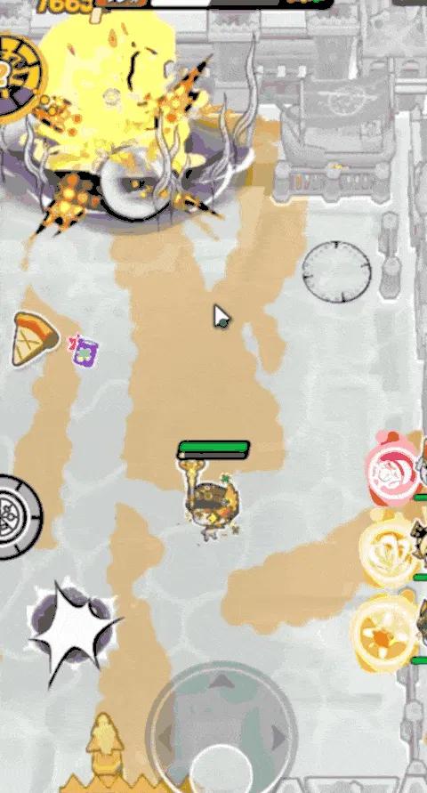 3. BOSS朝玩家方向发起弧形波浪进攻,并将以自身为中心吸收披萨