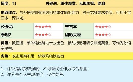 超高数值&增伤:基础攻击面板6685,被动奔狼之血提升25%攻击(范围内友方英雄不超过1名),终结技期间额外忽略目标30%防御(共60%,潜伏基础30%+终结技30%),额外对标记目标造成20%伤害。数值、增伤给得无比慷慨,拥有极高的单体输出。