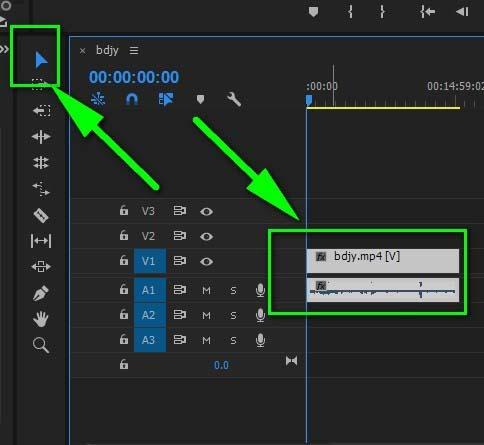 1、新建序列把要放大视频画面的视频导入,然后用“箭头”工具点击轨道上的视频(不点击可能无法选中哦)并且控制好时间线(我的放在开头)。
