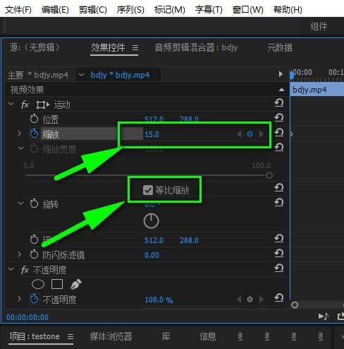 5、然后指定好画面的缩放比例,比如我指定成等比例和百分之十五的缩放。