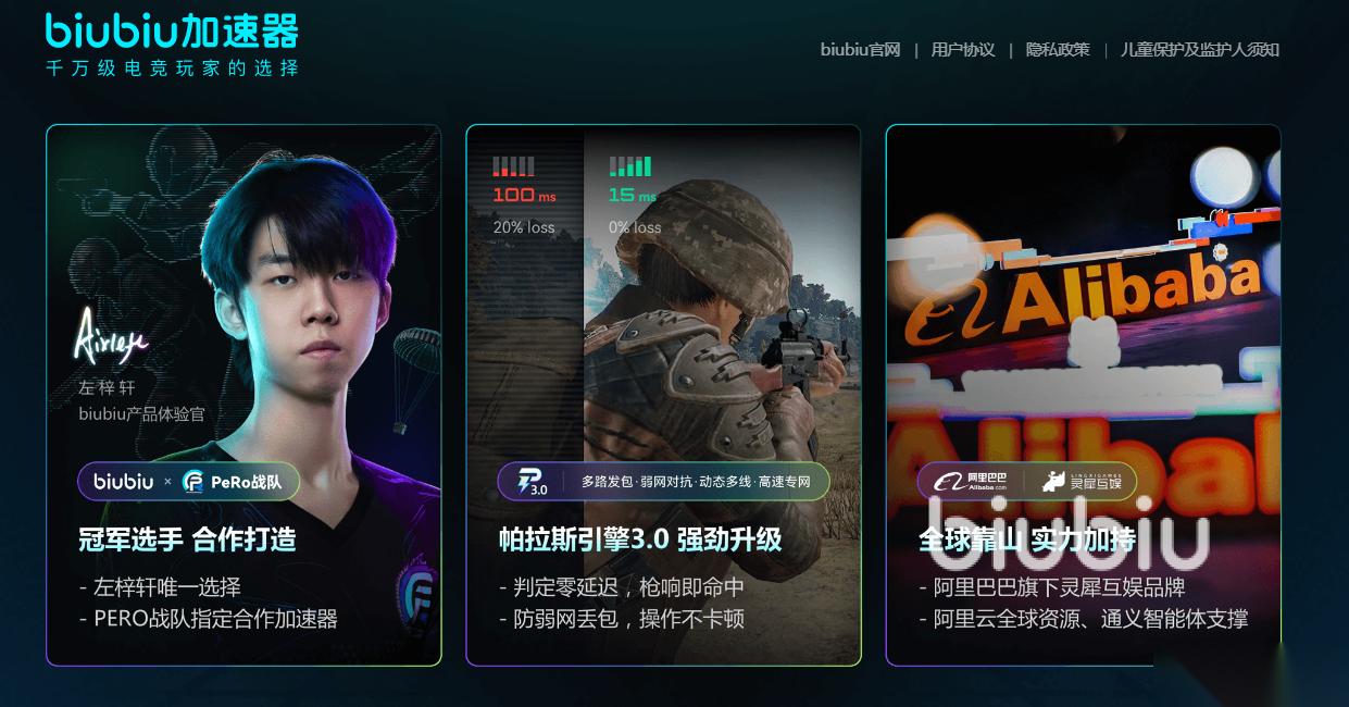 其次大家还可以直接点击上方链接成功安装专业的biubiu。因为这是阿里巴巴灵犀互娱旗下的产品,从各种特色的方面来看,都是专注于给大家设计的专业工具,能够让大家在玩游戏的过程当中畅通无阻的去连接网络,比如目前搭载的是自己研发的帕拉斯3.0引擎技术,还得到pubg冠军小叮当的大力推荐。其次还有四大核心的技术,可以给大家全方位的呵护,在经过全方位的升级之后,丢包率都可降低至0.3%以下。