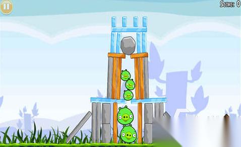 游戏里有不少外形圆滚滚的小鸟,它们的蛋被脸上一直带着得意神情的绿色小猪拿走,玩家就操控小鸟用弹弓发起进攻,小鸟就会按照划出的弧线去撞击小猪搭建的不规整堡垒。游戏里一共能使用五种小鸟,每一种小鸟的作用都不一样,前期只需要简单撞击木板就能过关,后期需要仔细调整发射角度,选择合适的小鸟,借助建筑结构的连续倒塌来完成关卡。