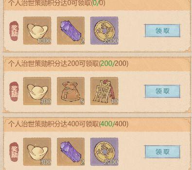 1、需完成治世任务解锁奖励,满级后可获得大量星辰石、高级强化石、元宝和通宝。适合新手玩家或希望快速提升二队战力的玩家,但需注意任务完成难度。