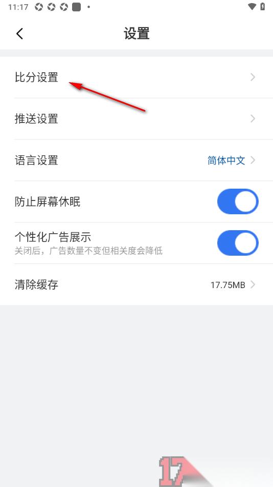 3.这时候页面上会展示出相关的内容信息,将其中的【比分设置】选项点击打开即可进入操作。