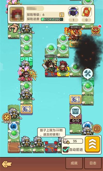 4、虽说每日都可获得骰子,但骰子存量是有上限的,可不要忘了每天清空免费骰子,不然溢出就亏了。每天还可以用元宝兑换一些骰子,建议每天换满;骰子用得多,探险经验就越多,特殊地皮停留的次数越多,特殊地块就能越早升级,早日提升探险等级和各地皮的等级,就能越早地解锁更多特权和提升对应收益产出,越早越好!