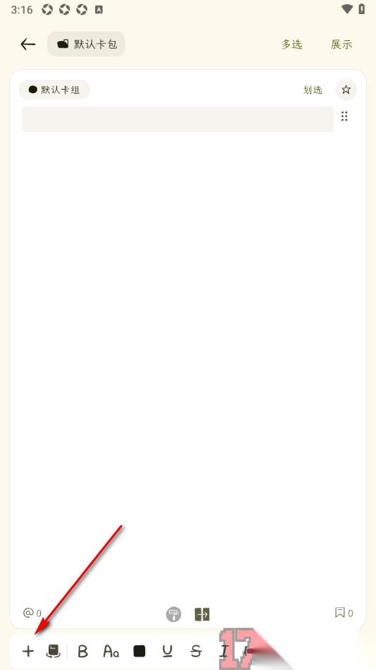 1.在手机上找到刻记APP这款软件点击打开,在打开的页面上找到右下角显示的加号图标按钮点击打开即可进入编辑页面。