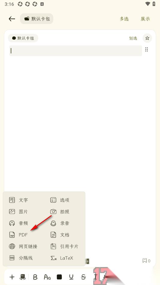 刻记APP是一款支持用户创建卡片内容的软件,很多用户平时有记录笔记的习惯,可以通过该应用来记录,支持在创建的卡片笔记中插入图片、文字、音频以及录音等内容,同时还可以从本地导入自己编辑好的PDF文档内容进来管理,但是对于一些新用户来说,可能对于如何导入PDF文档的操作是比较疑惑的,其实直接进入到该应用的笔记编辑页面中,找到底部的“+”图标点击打开,即可找到PDF文档功能从本地导入操作,导入进来的PDF文档会显示出全部的文档内容,方便用户滚动查看和阅读,一起来看看步骤吧。