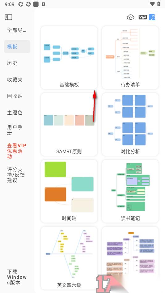 1.当我们进入到Mindhive思维导图APP这款软件之后,在打开的页面上选择一个自己喜欢的导图样式点击打开。