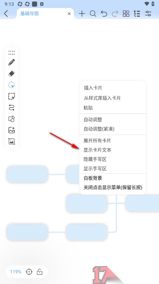 5.如果想要重新将其显示出来,按照同样的操作方式,找到【显示卡片文本】功能即可设置,如图所示。